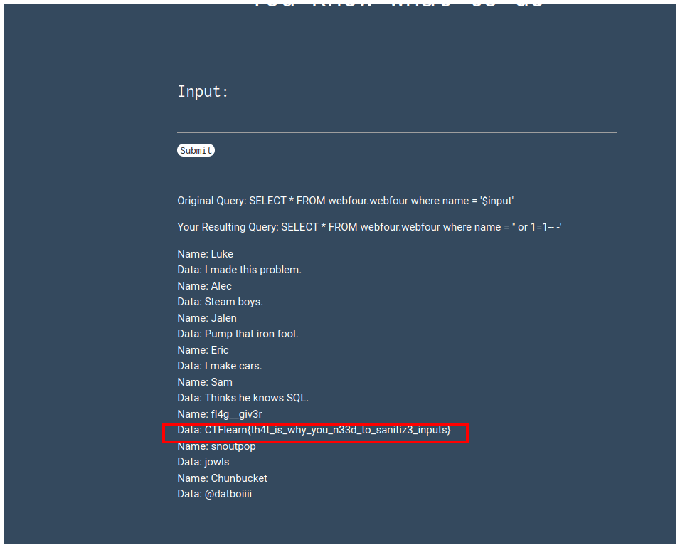 CTFlearn{th4t_is_why_you_n33d_to_sanitiz3_inputs}