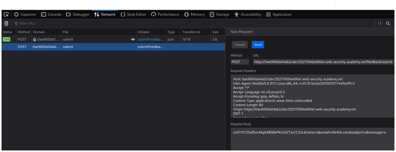 Vemos que se realiza una petición por el método POST que editaremos haciendo click derecho y en Edit and Resend.