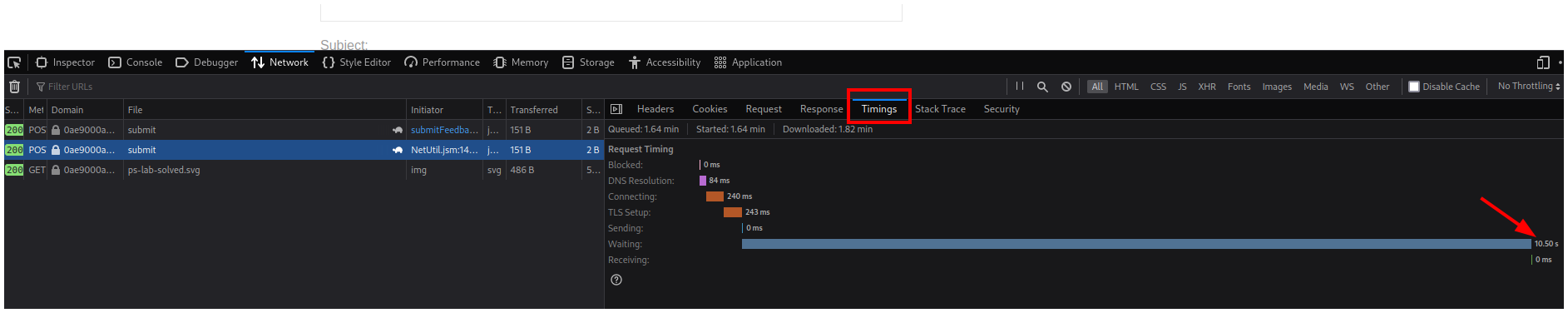 Vemos que nuestra petición se realizó correctamente, podemos comprobarlo haciendole click a la petición y yendo a la pestaña Timings vemos que se demoró 10 segundos.