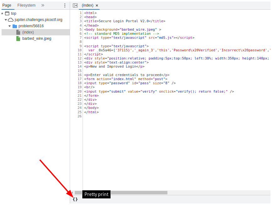 Se ve que está ofuscado, por lo tanto hacemos click en Pretty print.