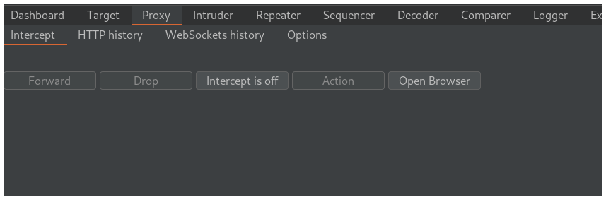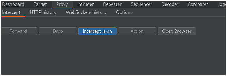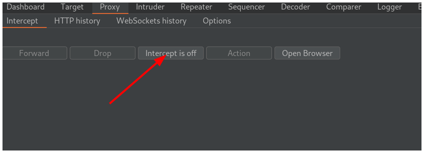 Te vas a Burpsuite y haces click en Intercept is off para empezar a interceptar la petición.