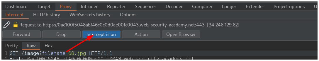 Dejas de interceptar la petición en la pestaña Proxy haciendo click en el botón Intercept is on.