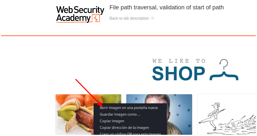 Primero hacemos click derecho sobre una imagen y la abrimos en una pestaña nueva.