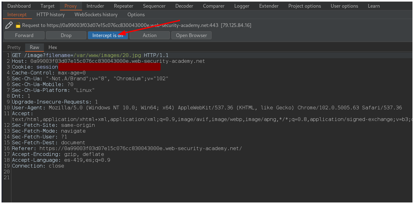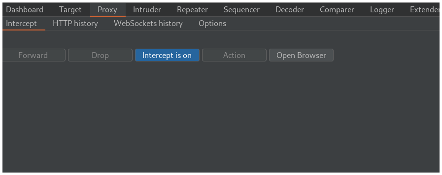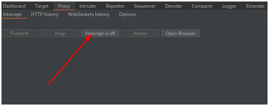 Luego vamos a Burpsuite y hacemos clikc en el botón Intercept is off para interceptar las peticiones.