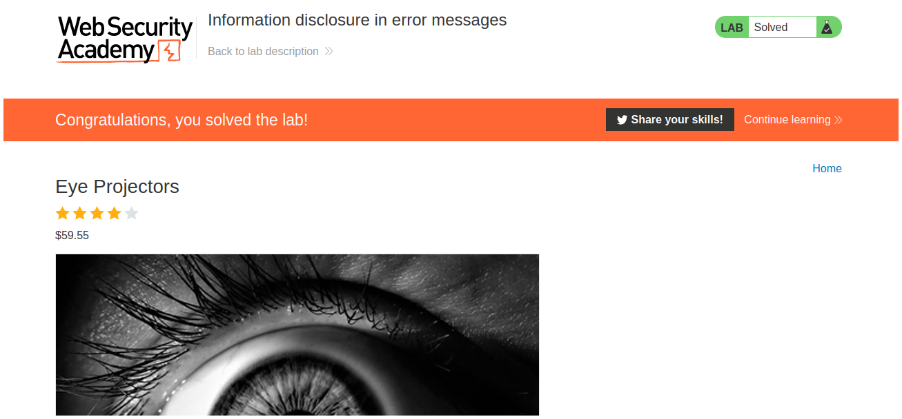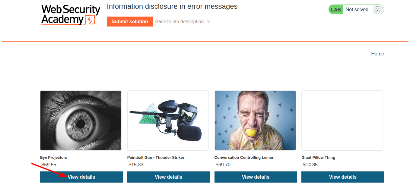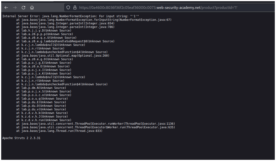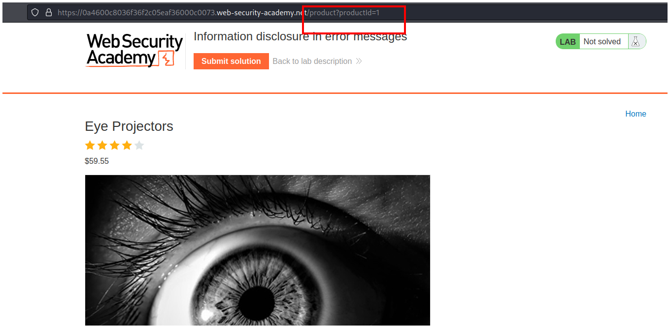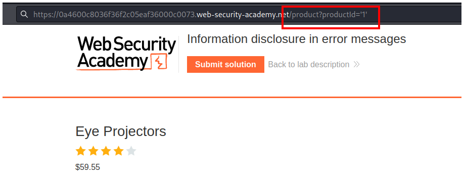 PortSwigger - Information disclosure in error messages (sin Burpsuite).