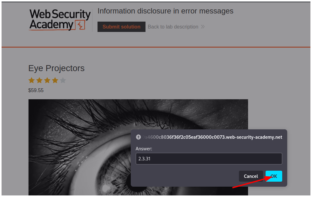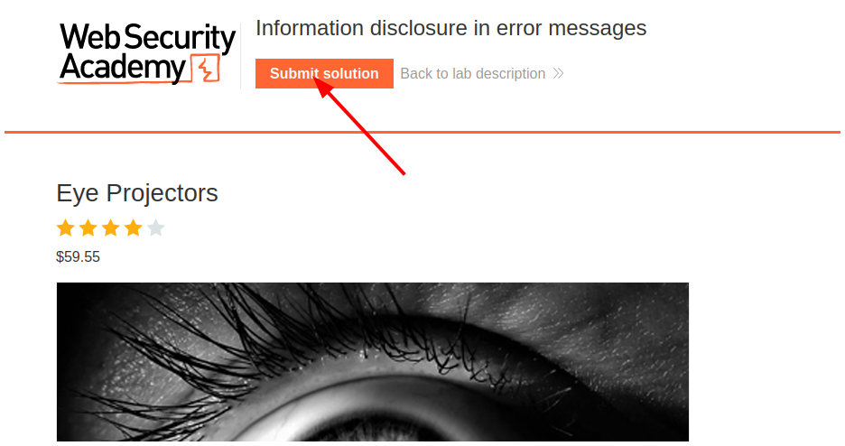 Volvemos a la página principal del laboratorio y hacemos click en Submit solution.