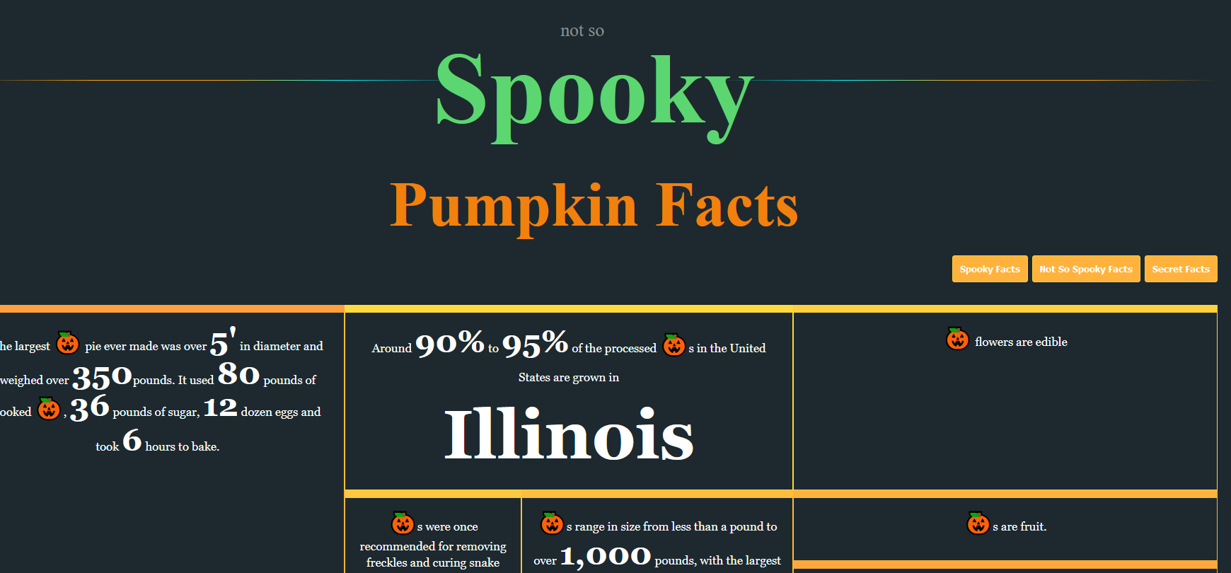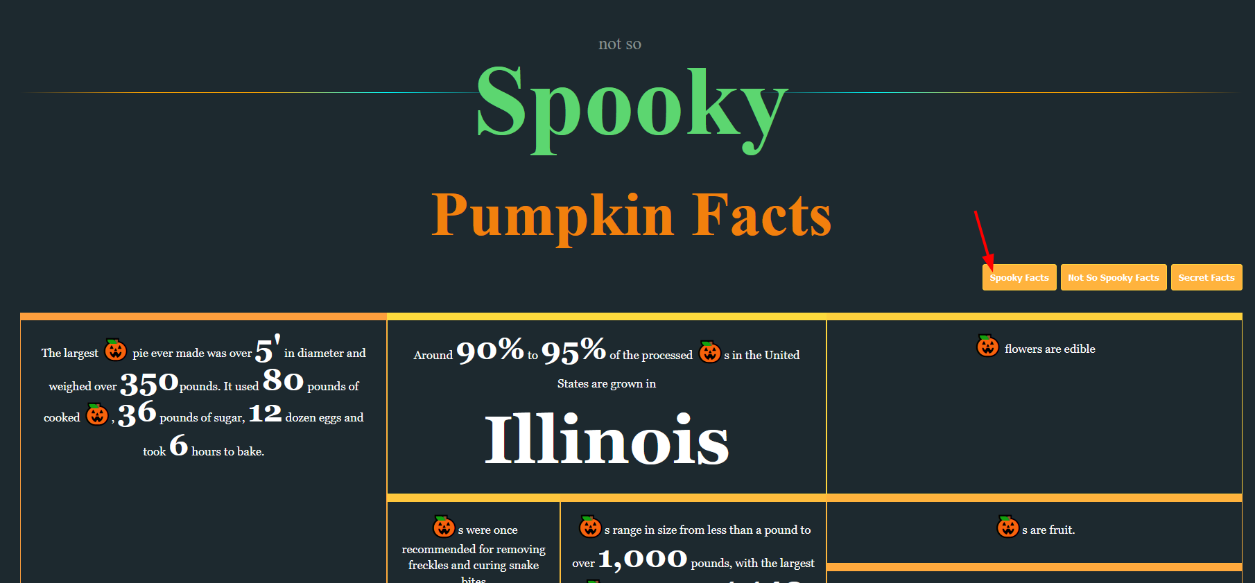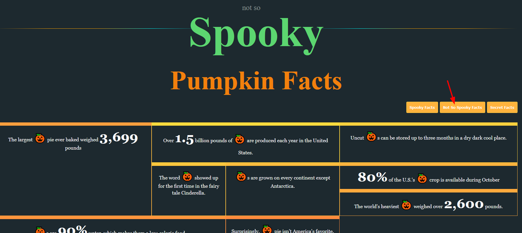 Si hacemos click en el botón Not So Spooky Facts las página nos muestra unos hechos no tan aterradores como los anteriores.