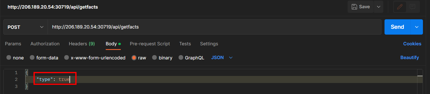 Buscando en el código nos damos cuenta de que debemos realizar esta petición a la ruta /api/getfacts.