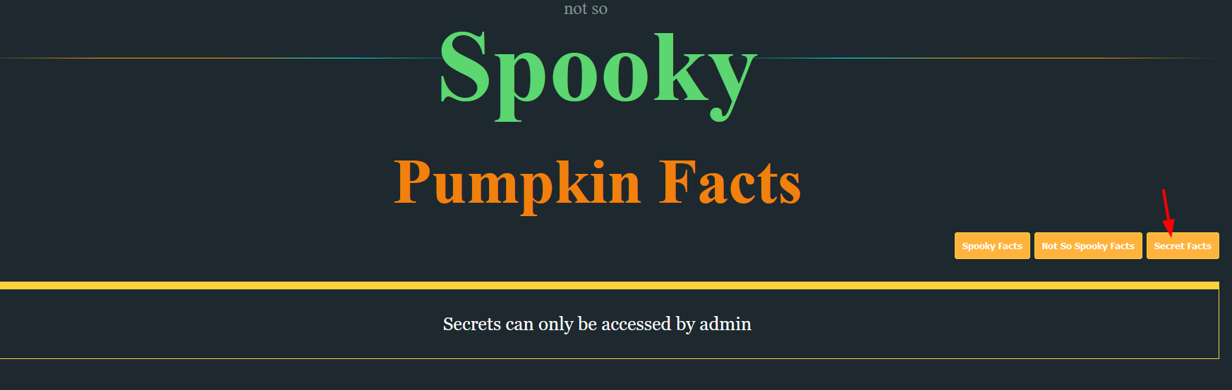Y si presionamos el tercer botón Secret Facts la página nos dice que los secretos solo pueden ser vistos per el admin.