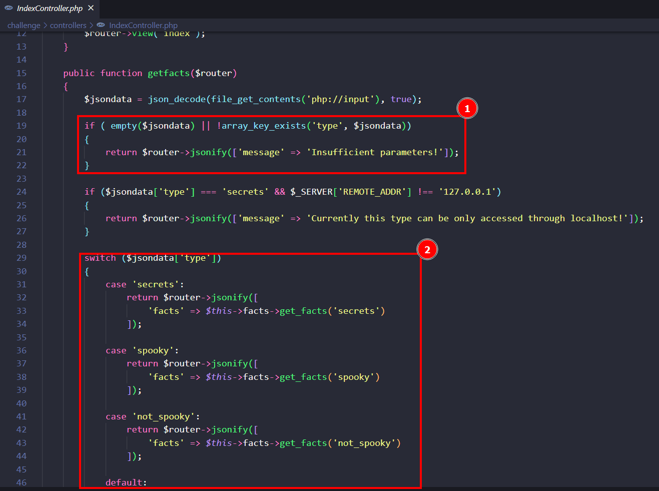 Segundo mediante un switch compara el valor del type con 3 opciones: secrets, spooky y not_spooky.