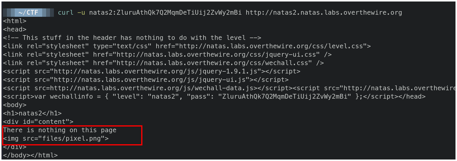 El comando nos responde con el código fuente de la página. Vemos que al final nos indica que no hay nada en la página actual, pero también vemos una imagen que se encuentra dentro del directorio files.