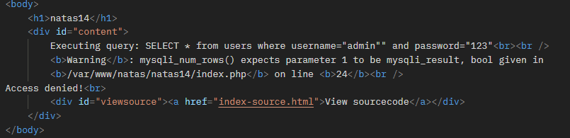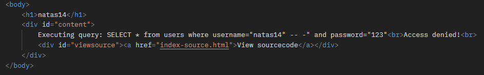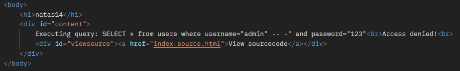 Leyendo un poco el funcionamiento del sistema de inicio de sesión observamos que se realiza una Query SQL. El problema con esta query es el hecho de que agrega directamente nuestro input a la query con ., no se realiza ningún tipo de filtro y por lo tanto podemos romper la query y baipasear el inicio de sesión.