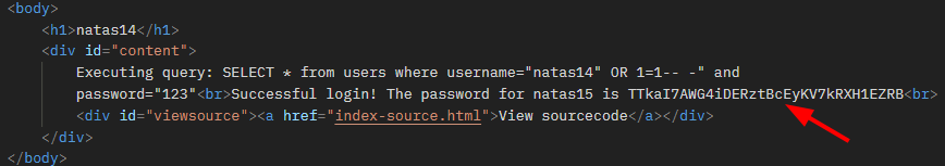 Lo que podemos hacer es forzar a que la query resulte en True. Si agregamos OR 1=1 la query resultará True porque 1=1 siempre será verdadero.