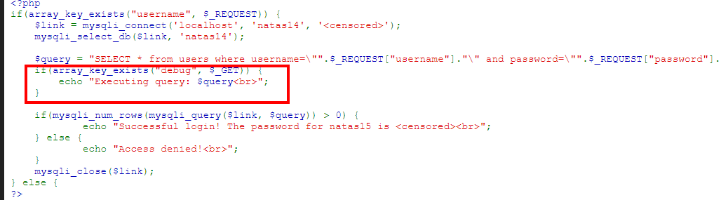 Otra cosa interesante que vemos es este if, nos dice que si agregamos el parámetro debug con el método GET podremos ver cómo se ejecuta la query en el servidor.