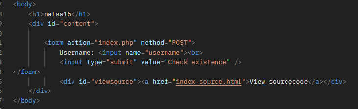 Vemos en la respuesta un formulario y un link que redirige al código fuente de la página.