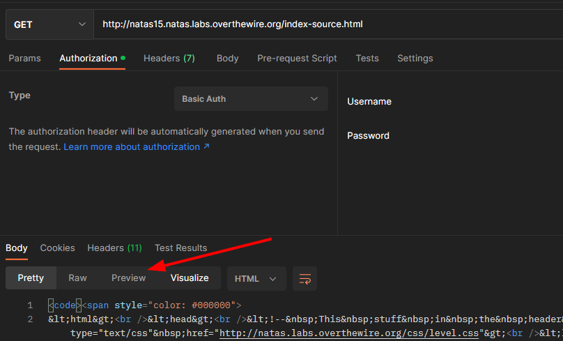 Al recibir la respuesta vamos a la pestaña Pretty.