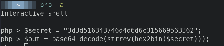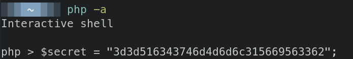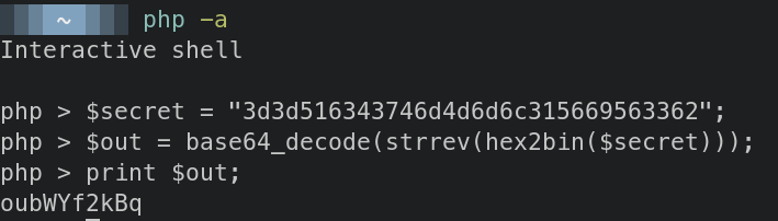 base64_decode(strrev(hex2bin("3d3d516343746d4d6d6c315669563362"))) -> EL_SECRETO