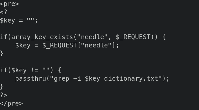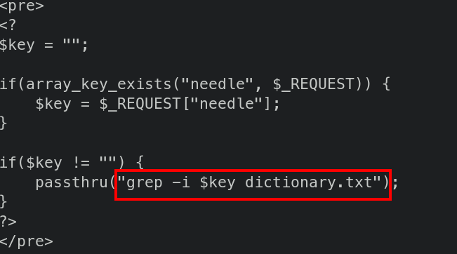 El input que ingresamos se guarda en la variable $key y se agrega al comando grep sin ningún filtro, por lo tanto, podremos ejecutar comandos.