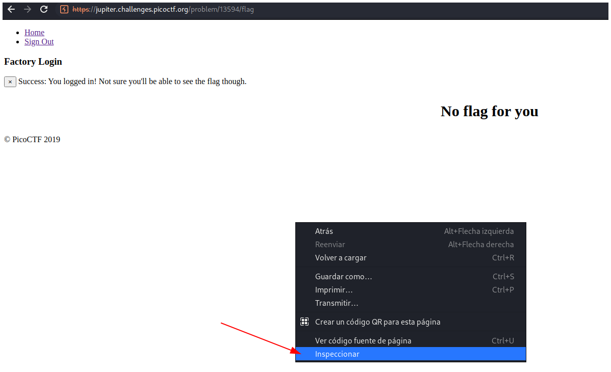 Después de iniciar sesión presionamos click derecho y en Inspeccionar.