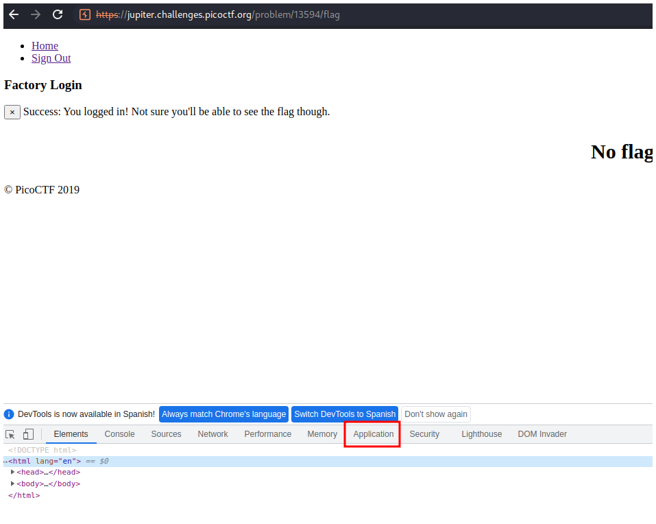 Hacemos click en Application (dependiendo de tu navegador o idioma la pestaña tendrá otro nombre, yo estoy ocupando Chromium)