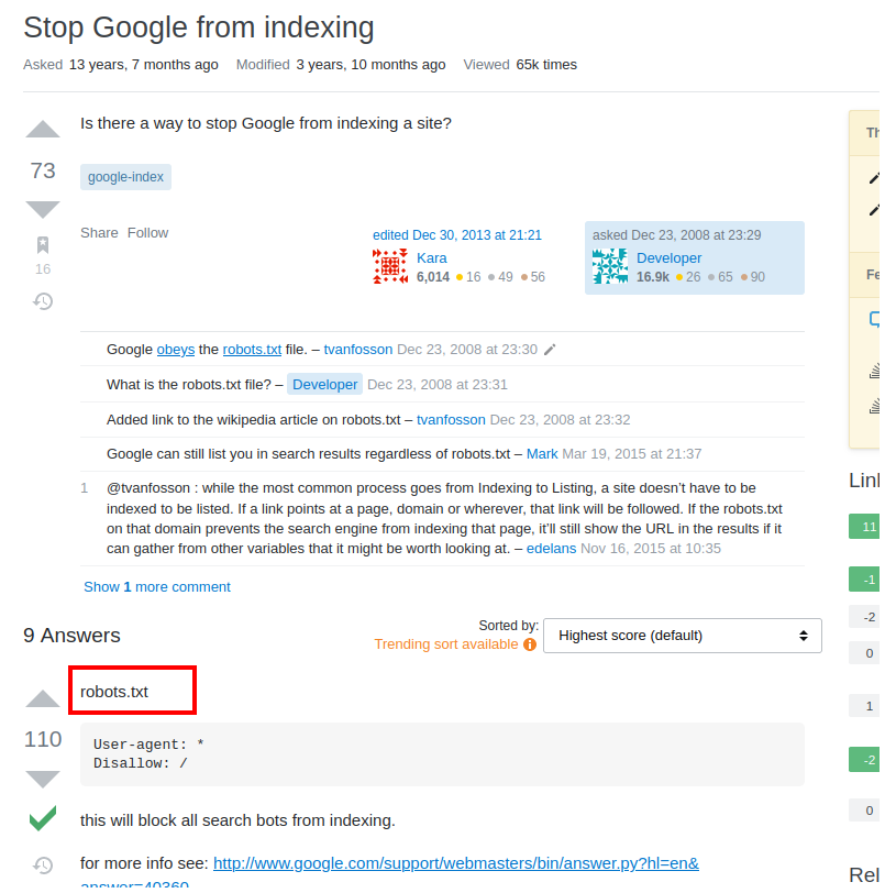 Vemos que en esta pregunta de Stack Overflow se hace mención al archivo robots.txt.