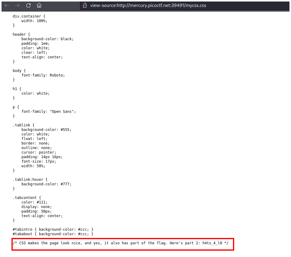 El archivo .css nos da la segunda parte de la flag h4ts_4_l0.