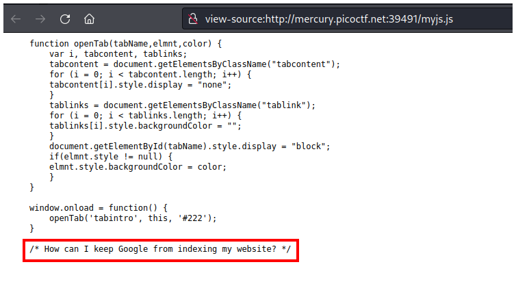 Si vamos al archivo .js veremos que nos hace una pregunta. Si googleas encontrarás que la respuesta es el archivo robots.txt.