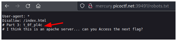 Si vamos al archivo veremos la tercera parte de la flag t_0f_pl4c y una pregunta. La respuesta a la pregunta es el archivo .htaccess.