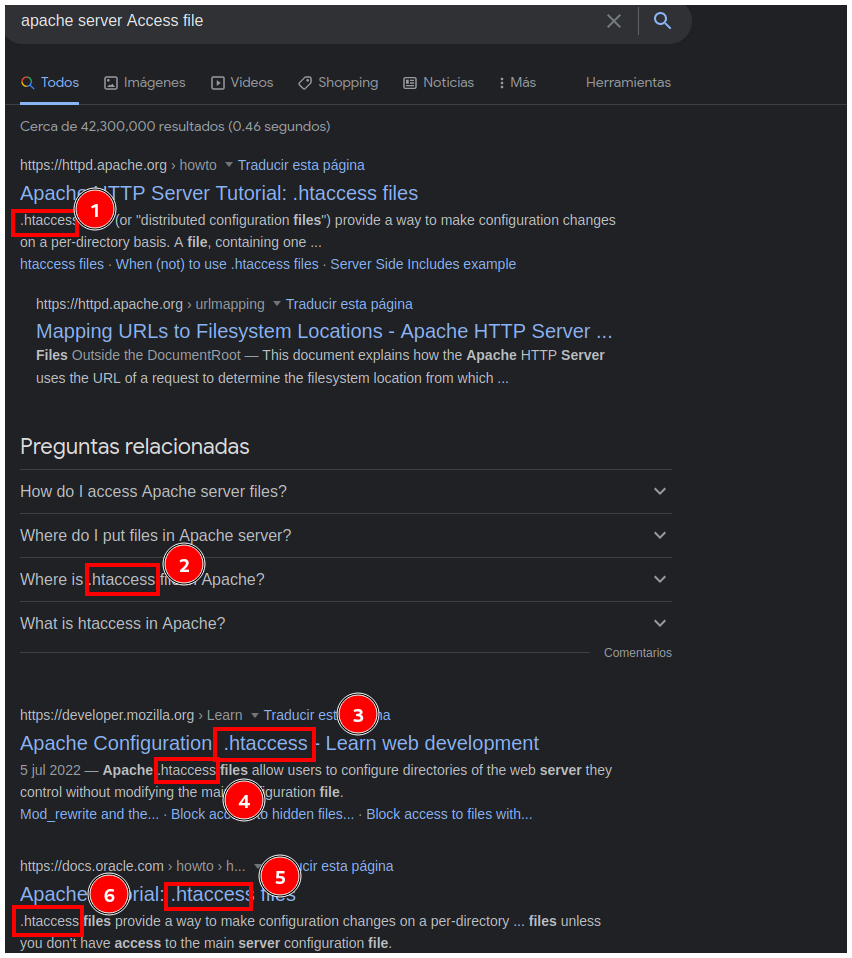 Vemos que en 6 occaciones se hace mención al archivo .htaccess.