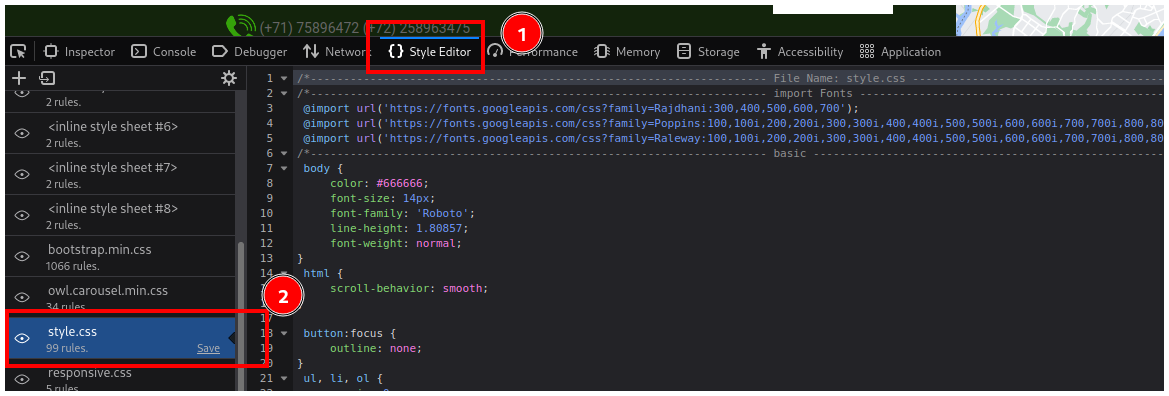 Luego te vas a la pestaña Style Editor y buscas el archivo style.css.