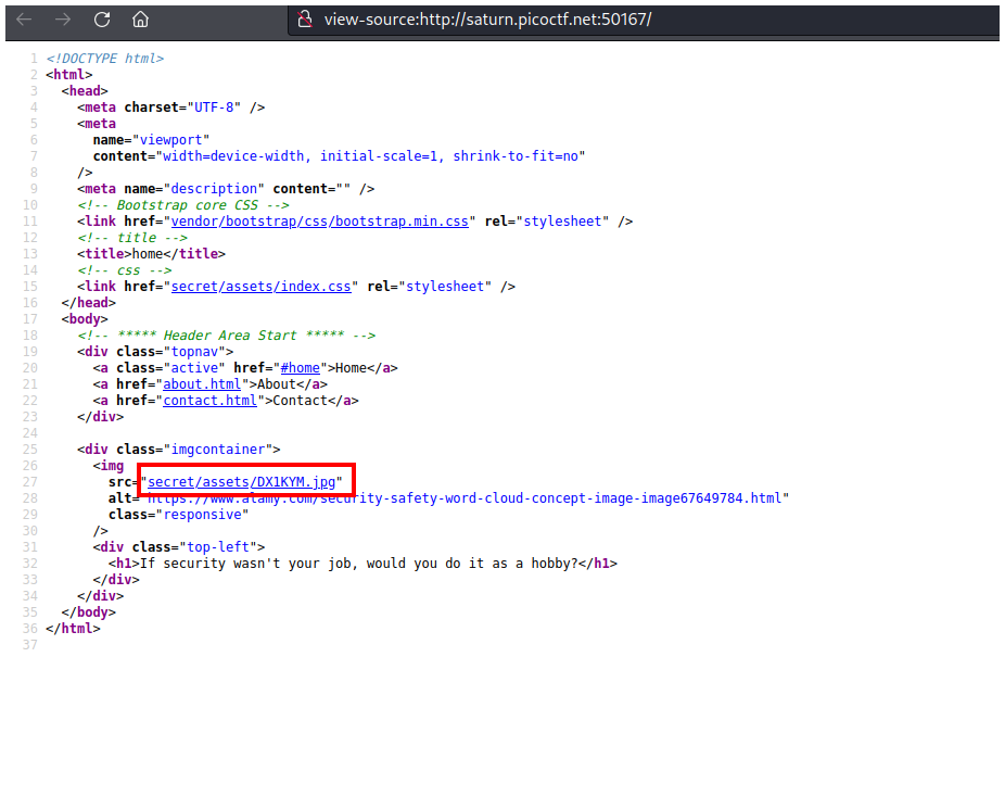 En el código fuente vemos un archivo que nos llama la atención secret/assets/DX1KYM.jpg.