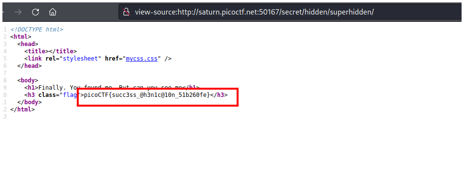 Pero si vamos a la ruta secret/hidden/superhidden veremos la flag.