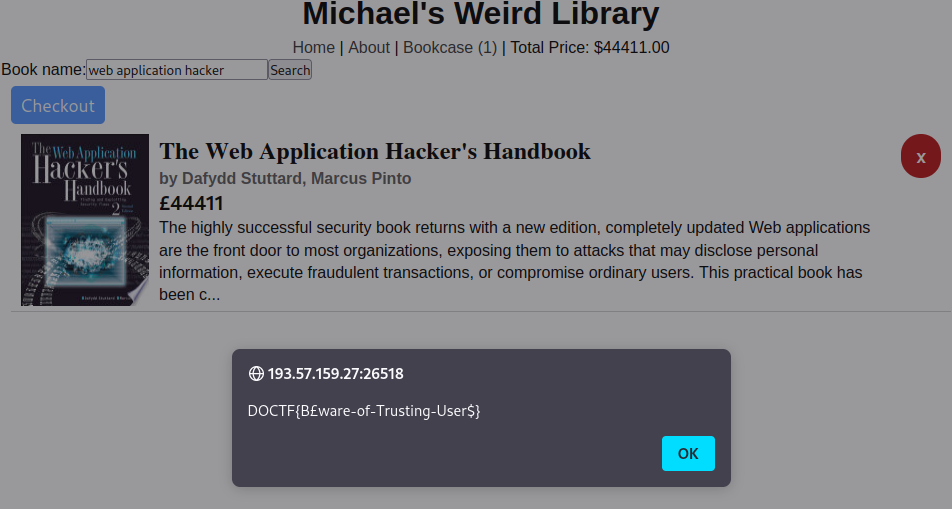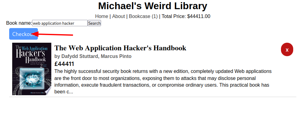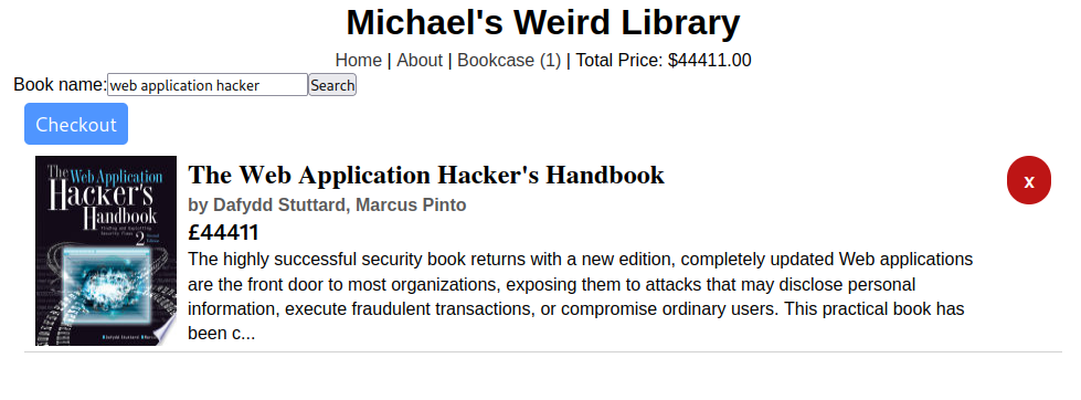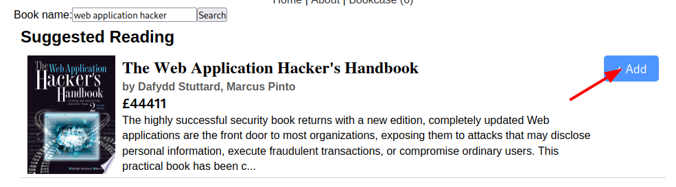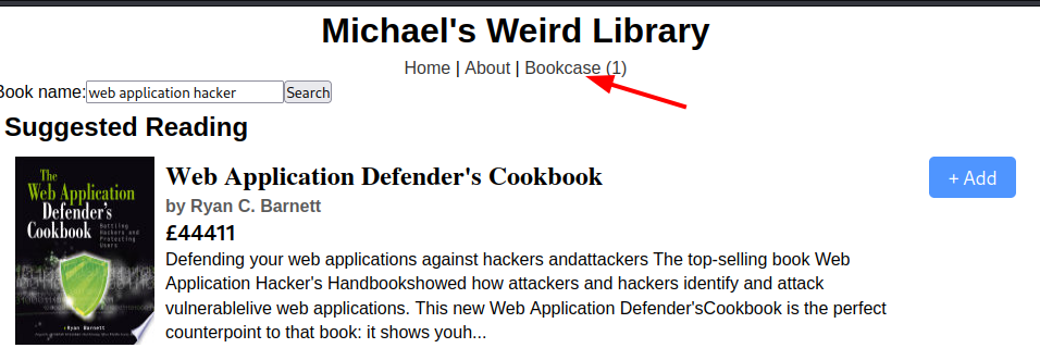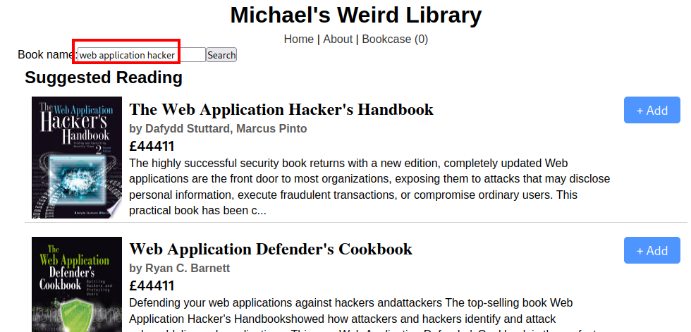 La descripción del reto nos dice que a Michael le encante el libro Web Application Hacker’s handbook, así que escribiremos el nombre de este libre en el buscador.