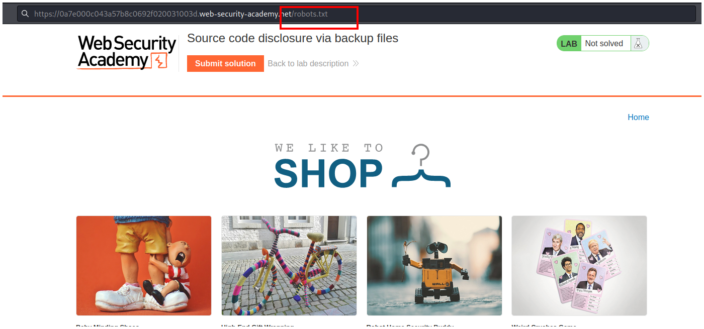 PortSwigger - Source code disclosure via backup files (sin Burpsuite).