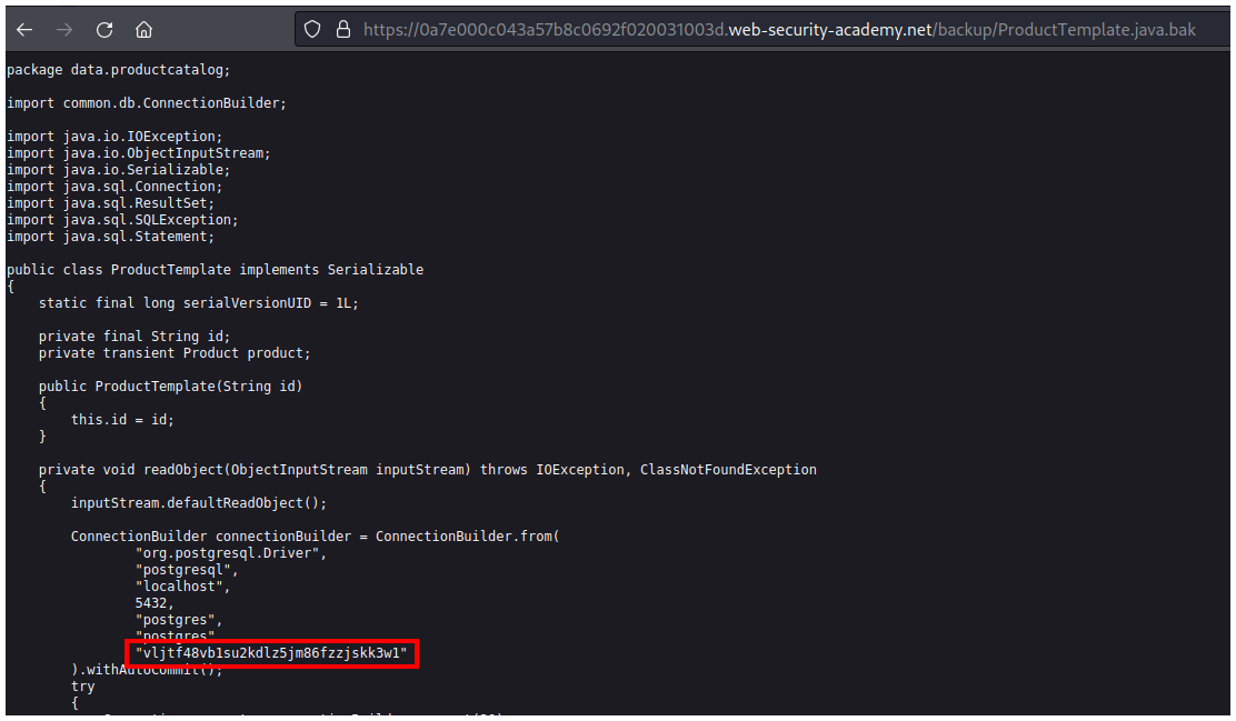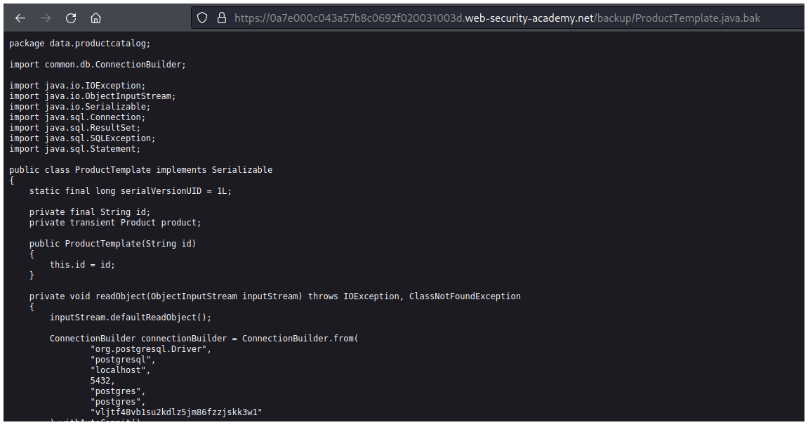 Si revisamos bien vemos que se realiza una conexión hacia una base de datos postgresql y se observa la contraseña.