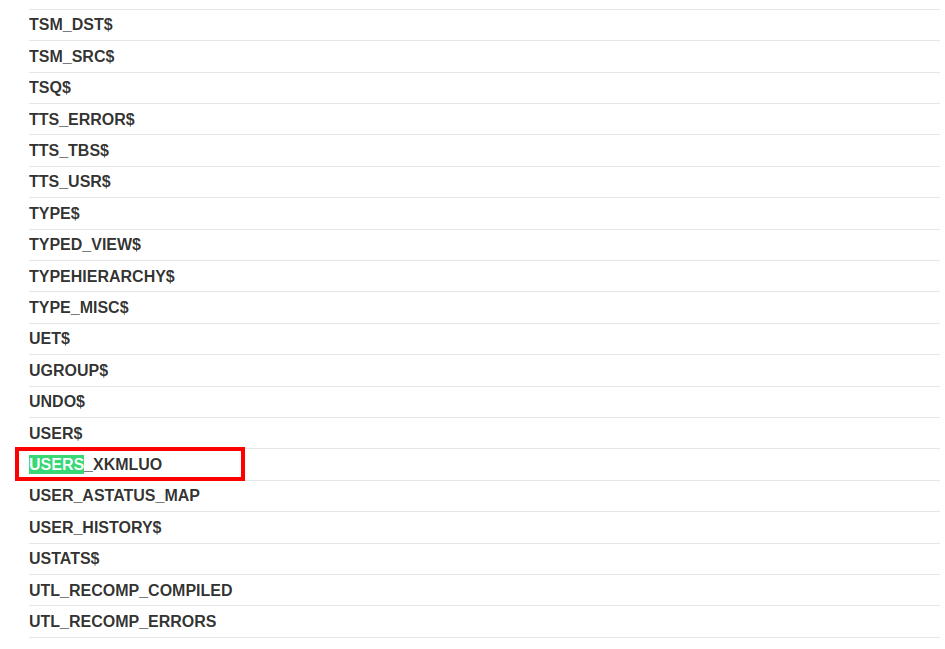 Con CTRL + f escribimos USERS y podemos encontrar de manera más rapida la tabla que nos interesa USERS_XKMLUO.