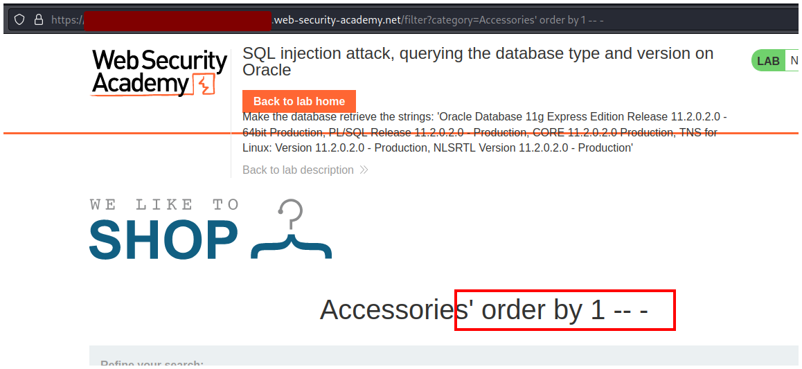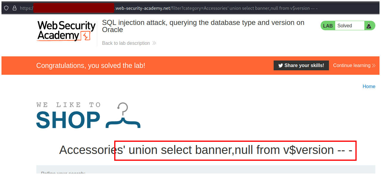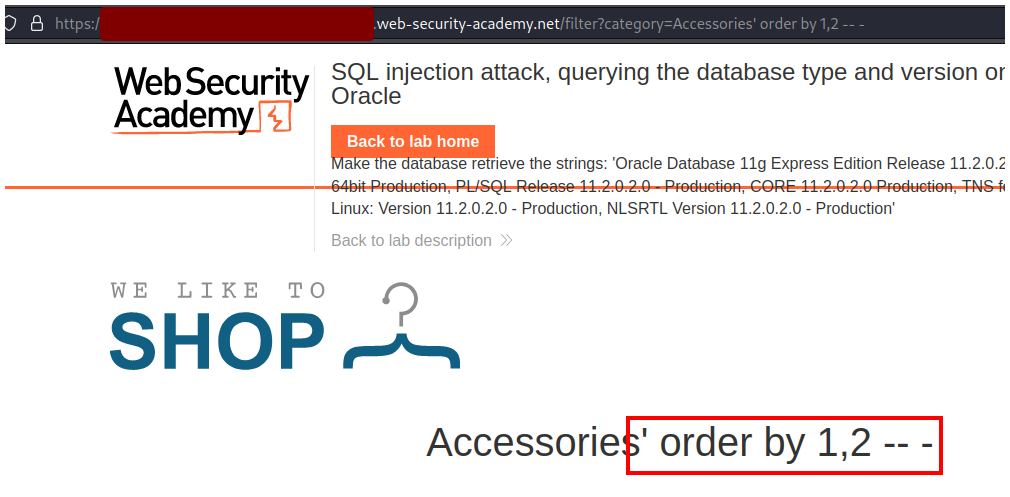 Por suerte el primer payload funcionó e identificamos que la base de datos es Oracle, además resolvimos el lab.
