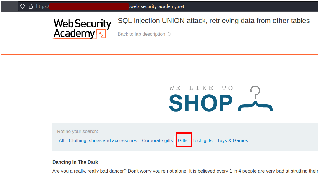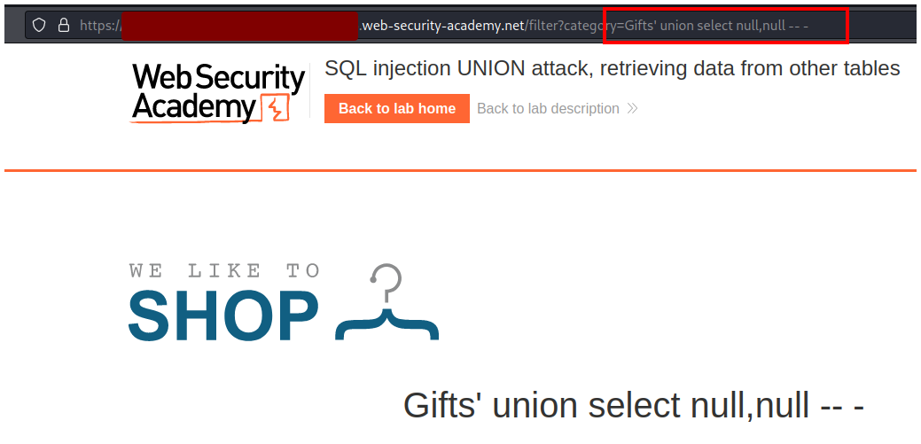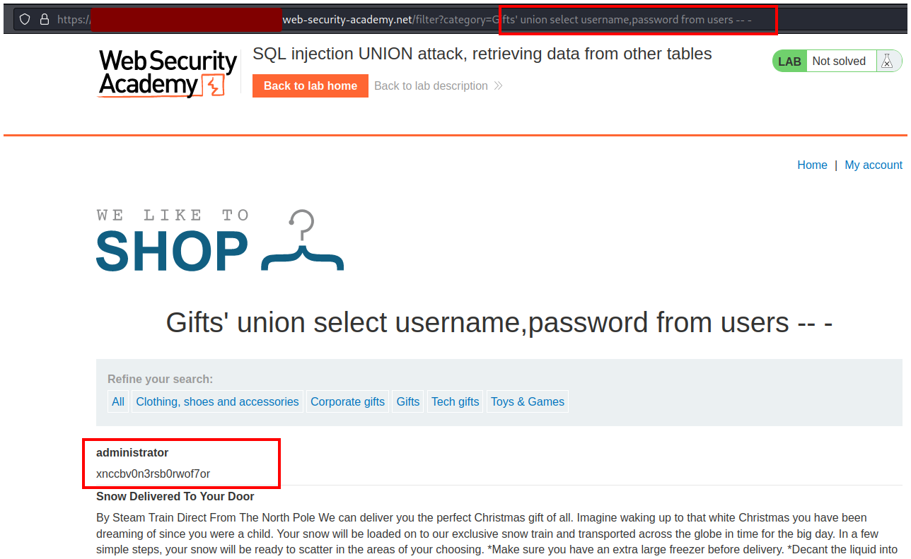 PortSwigger - SQL injection UNION attack, retrieving data from other tables.