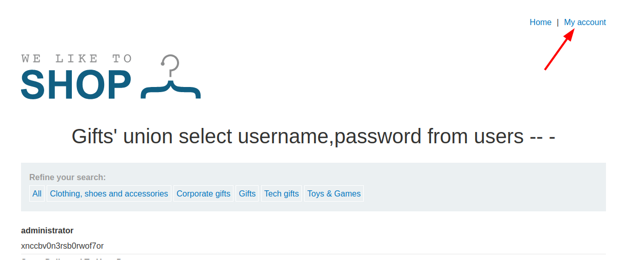 Con esta infomación podemos iniciar sesión, así que nos vamos a My account.