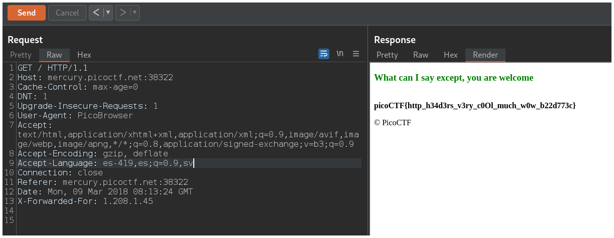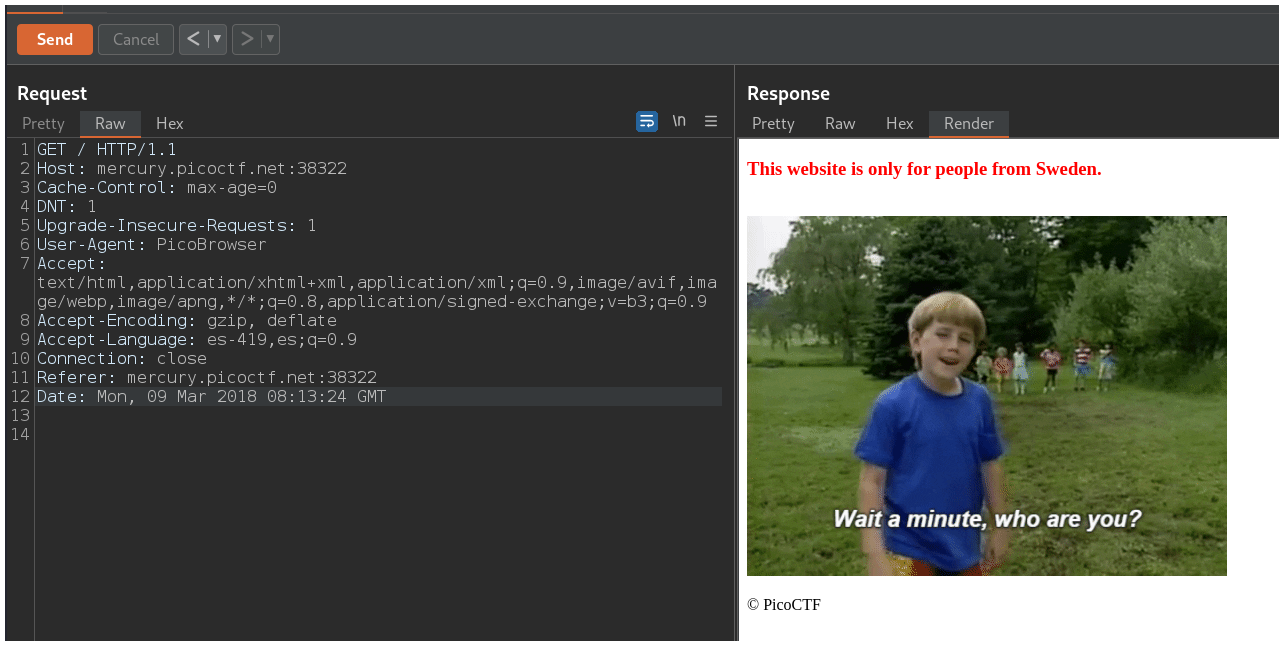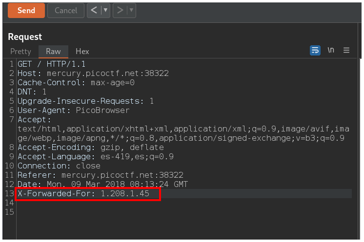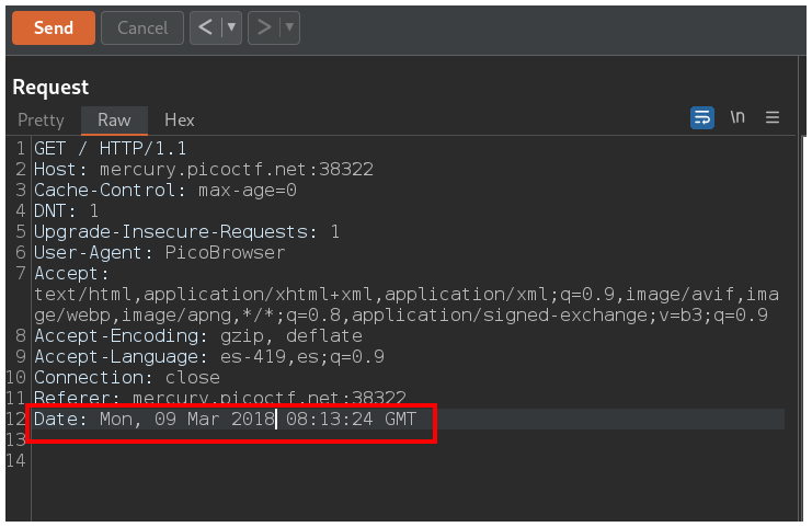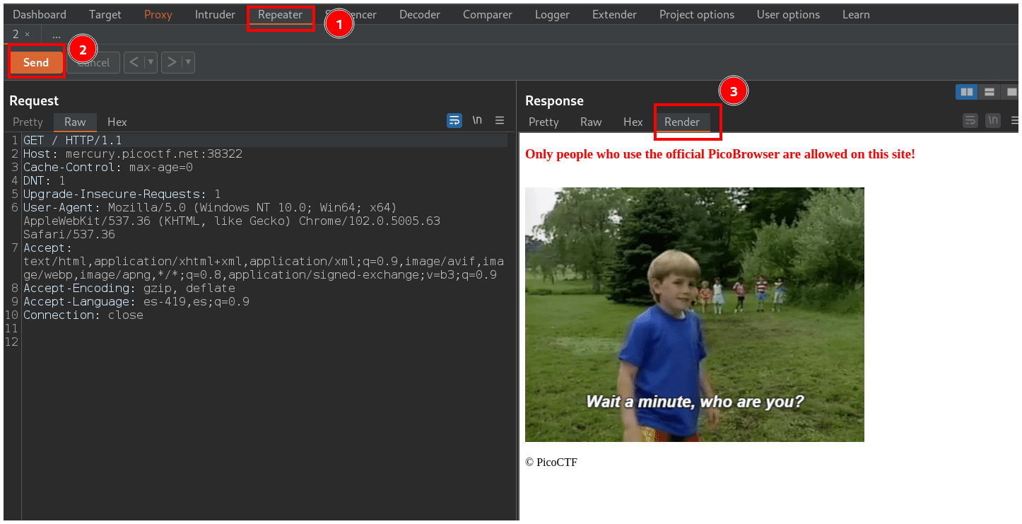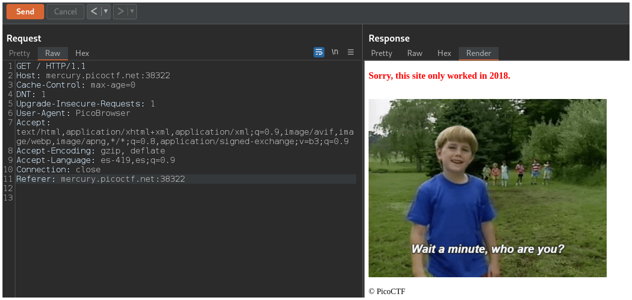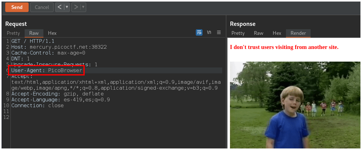 La página nos dice que nuestro navegador debe ser PicoBrowser, entonces debemos cambiar el header User-Agent para que diga PicoBrowser.