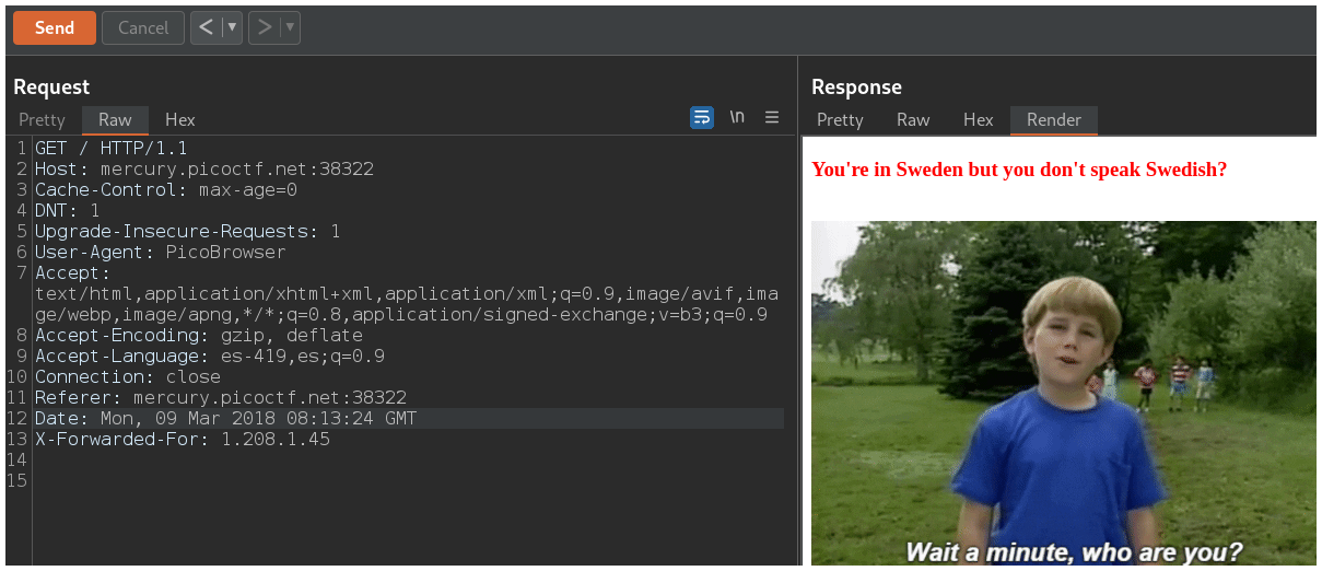Necesitamos agregar otra cabecera llamada X-Forwarded-For y agregar cualquier dirección ip de Suecia.